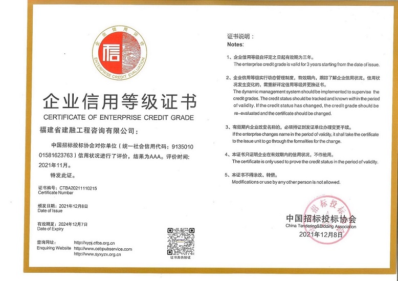 建融公司获得2018-2019年度福建省守合同重信用企业