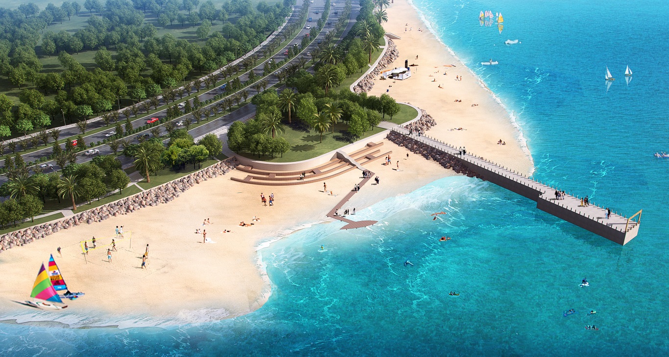 泉州台商投资区海湾大道道路及景观工程全长22.5km,起点由台商投资区和惠安分界开始,整体顺延沿海大通道向西至CBD商区,向北终点至后渚大桥东侧互通立交。海湾大道的道路等级为城市主干路,主路采用一级公路线型指标,设计速度80km/h(局部降速),辅路采用城市次干路线型指标,设计速度采用40km/h。